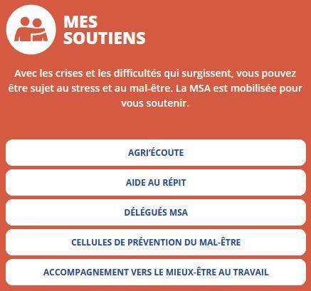 MSA Alsace - Soutien agri’ : nos solutions pour faire face aux crises agricoles Face aux crises agricoles actuelles, vous pouvez rencontrer des difficultés importantes. La MSA propose plusieurs solutions pour vous accompagner : aides financières, accès aux prestations sociales, soutien psychologique, et plus encore. Pour en savoir davantage, consultez le Pass Agri de la MSA. |